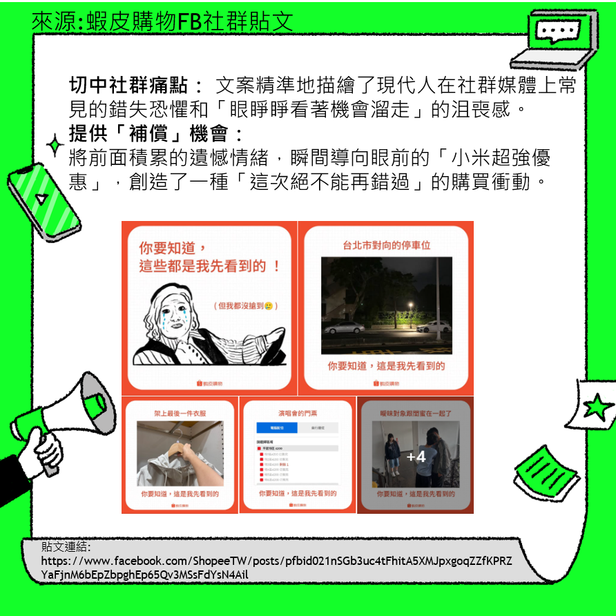 提供「補償」機會:將前面積累的遺憾情緒,瞬間導向眼前的「小米超強優惠」,創造了一種「這次絕不能再錯過」的購買衝動。
