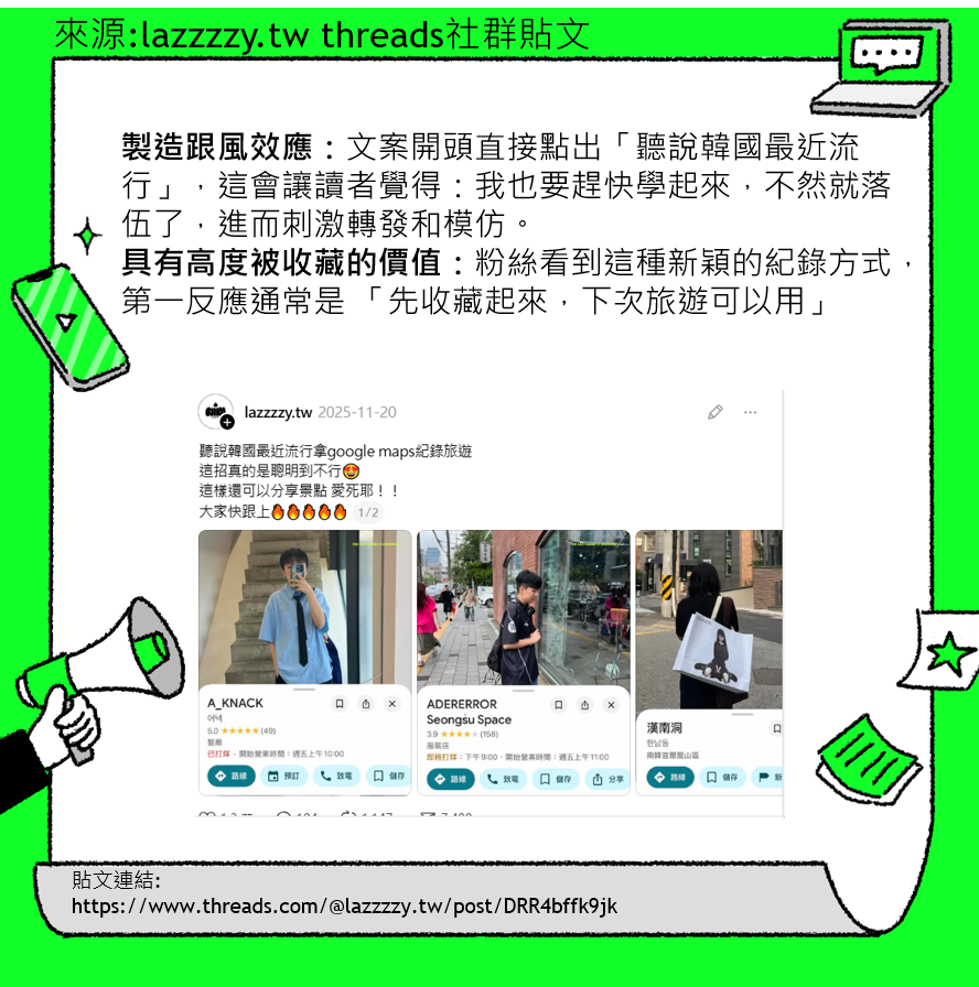 製造跟風效應:文案開頭直接點出「聽說韓國最近流行」,這會讓讀者覺得:我也要趕快學起來,不然就落伍了,進而刺激轉發和模仿。