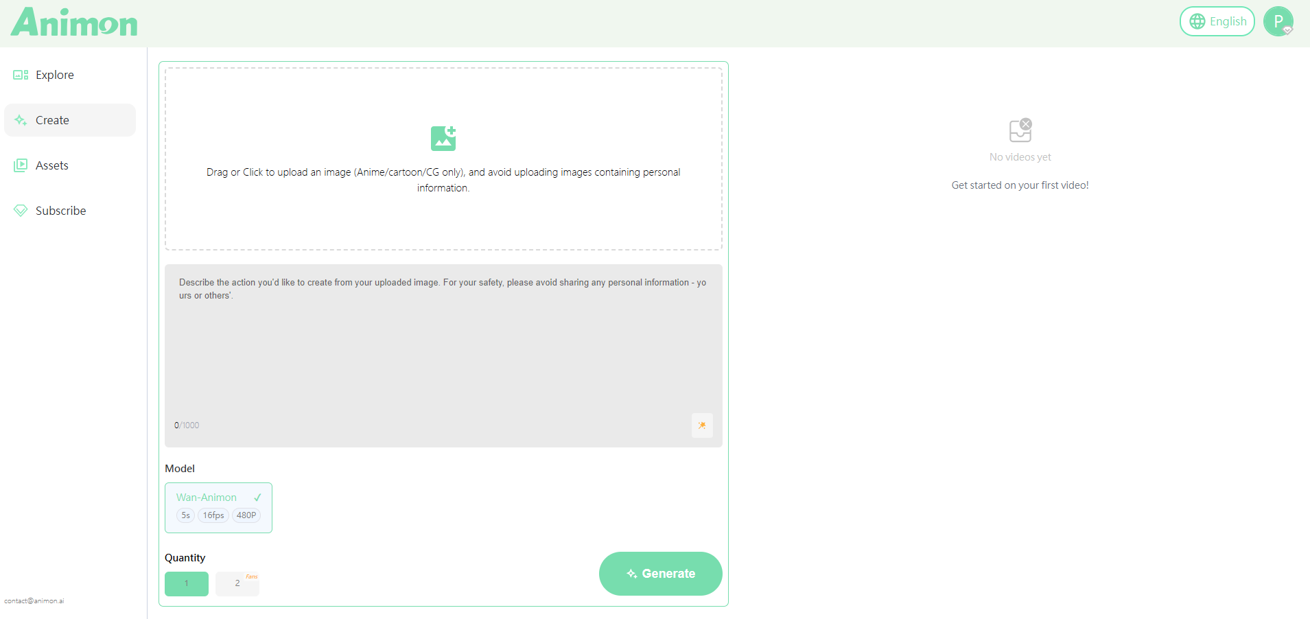 選擇一張你想要變成動畫的圖(建議使用動漫風格插圖,效果最好),直接拖曳或點擊上傳。第四步:輸入動作提示詞