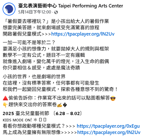 台北表演藝術中心社群貼文