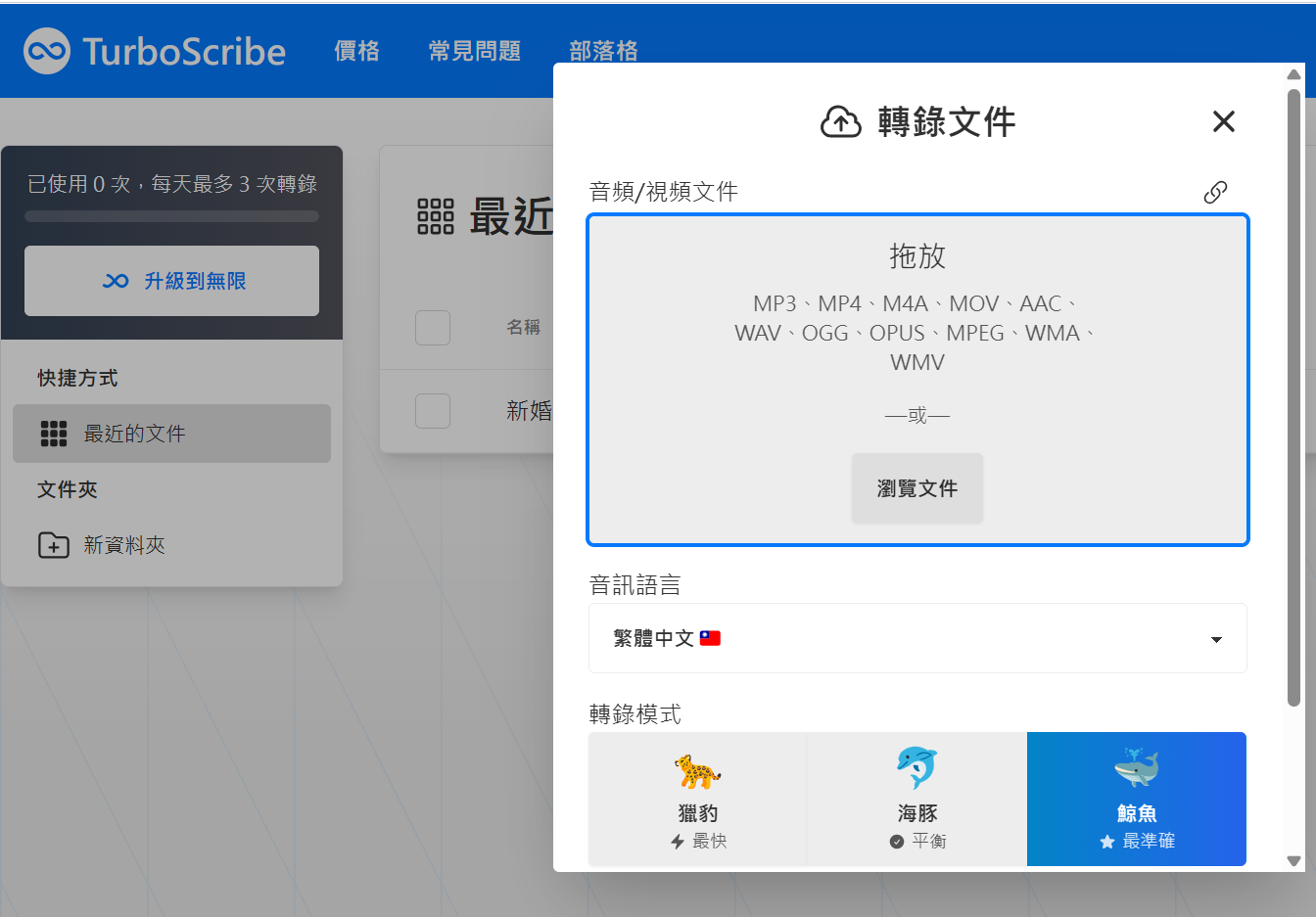TurboScribe 提供免費試用(每日可使用三次),但其付費方案也很實惠,適合需要大量轉錄的使用者選擇。 - 適用情境推薦