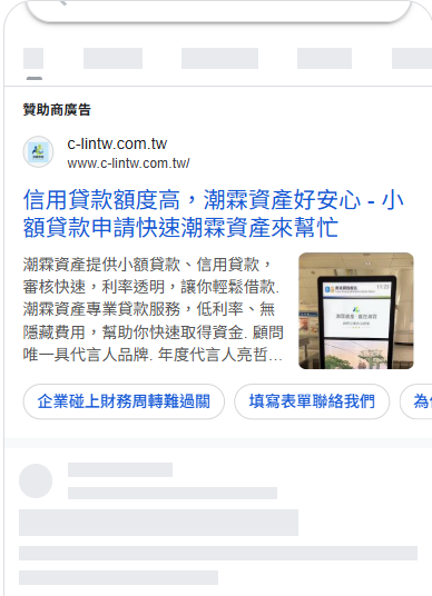 如何在眾多金融貸款廣告中,使「潮霖資產」的訊息能夠有效抓住潛在客戶的注意力?面對不斷推陳出新的同業行銷手法,如何透過獨特的創意與清晰的訴求,讓品牌形象在目標客群心中留下深刻印象,而不是被資訊洪流淹沒?