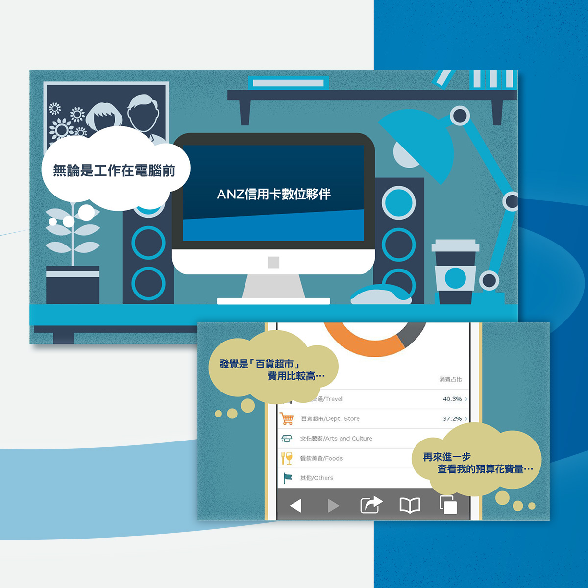 影片以2D插畫風格呈現,挑戰在於如何在活潑的畫面中仍保留澳盛銀行一貫的專業與信任感。視覺設計需兼顧品牌識別色彩、整體穩重調性,以及吸引觀眾注意的創意表現。