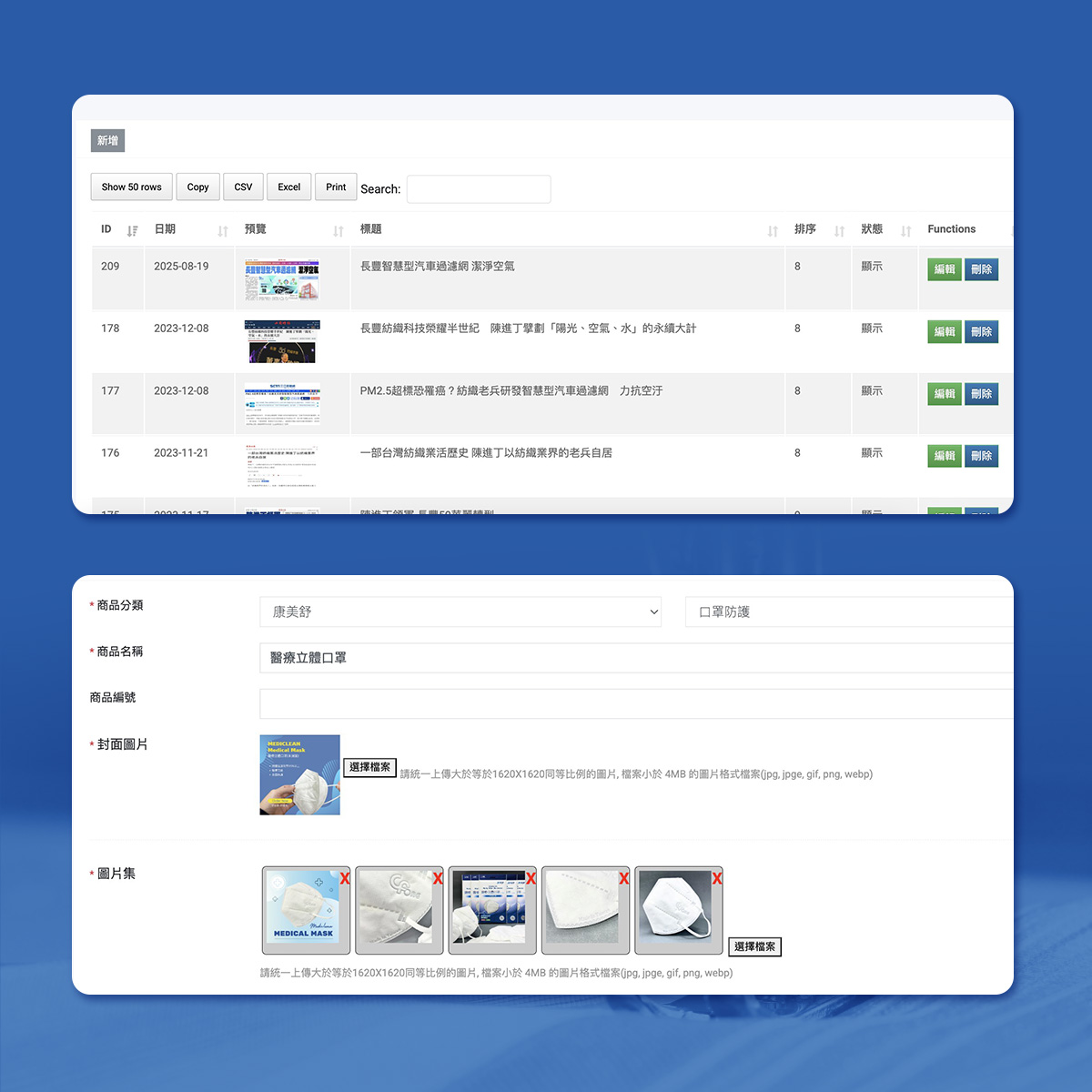 官網長期維運,必須有能上稿/編輯的後台,從 Banner、單元版位到產品、新聞、永續與影音,都要權限清楚、操作直覺。