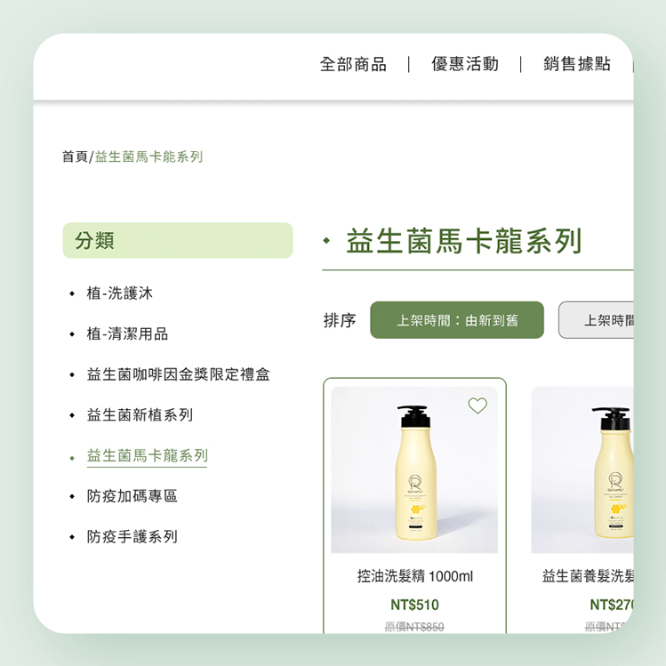 以「產品為主角」為核心理念,從首頁設計開始就以分類清晰、推薦有感為導向,建立完整的商品探索與轉換動線。購物流程設計上也簡化點擊步驟,從選品到結帳皆順暢直覺,讓消費者快速進入購買情境。