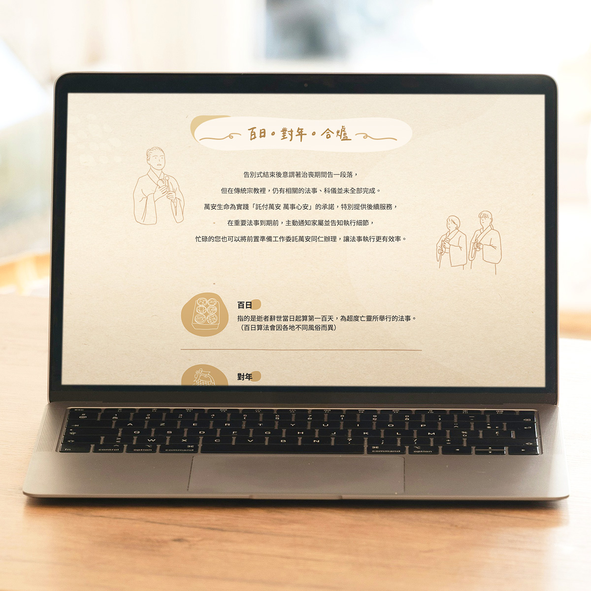 萬安生命,作為台灣殯葬業界的指標品牌,秉持「以人為本、以禮為尊」的精神,提供全方位的生命服務。此次改版聚焦於品牌形象升級與服務動線優化,透過溫潤典雅的視覺設計與人性化的資訊架構,打造出兼具信任感與使用便利的品牌官網。