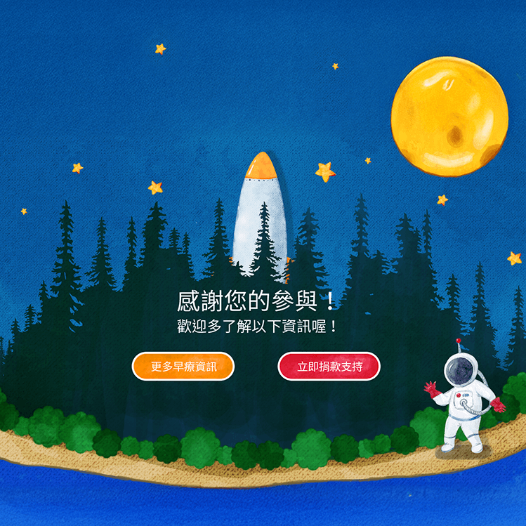 以「火箭升空」為主視覺,結合便利貼數量與動畫觸發,象徵集氣陪伴孩子飛得更高。