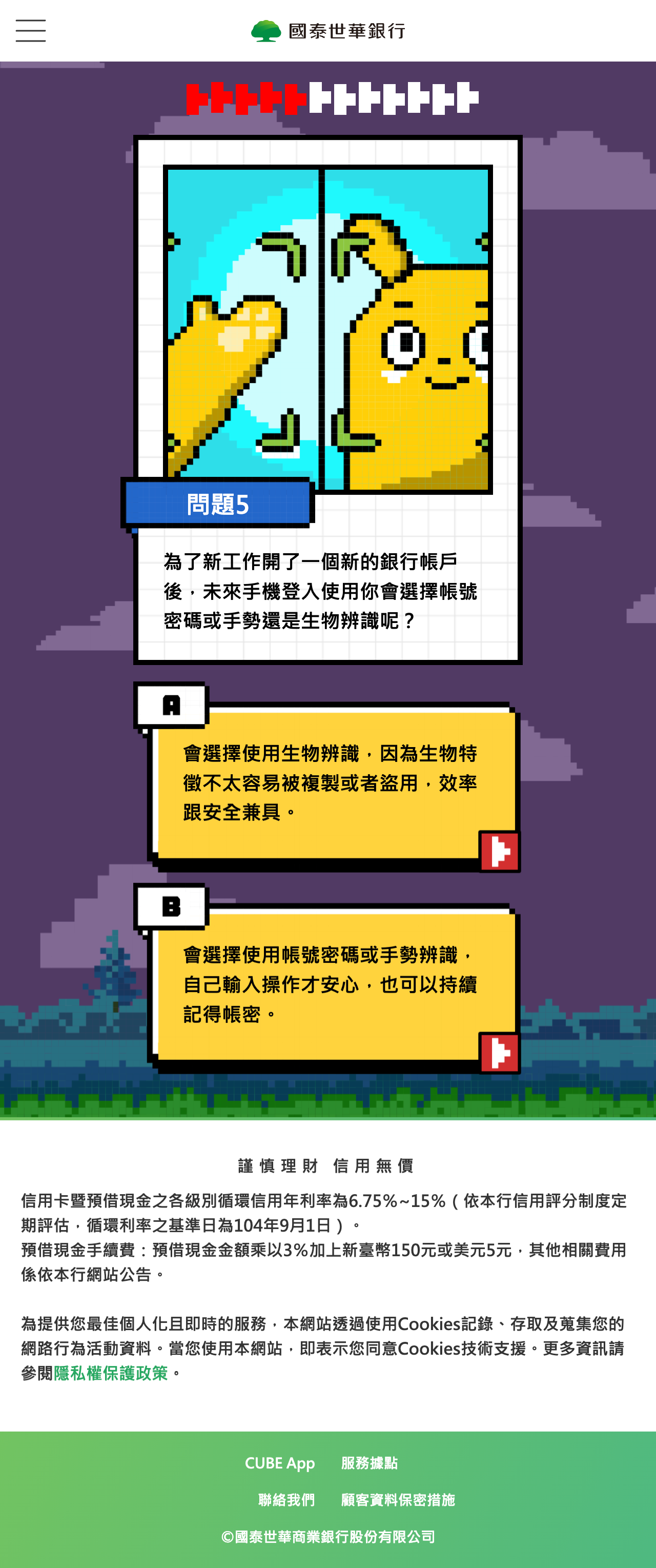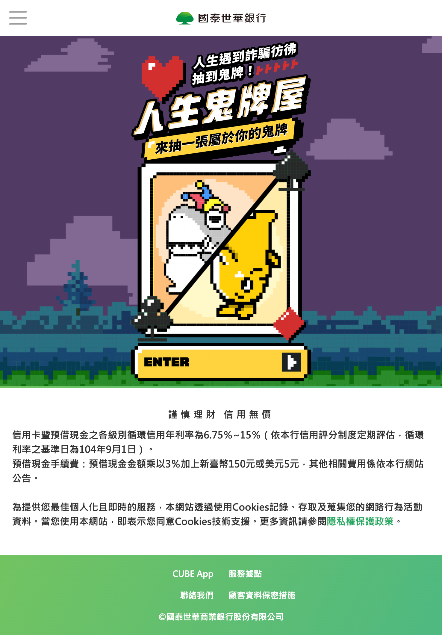 國泰世華銀行|CUBE 防詐騙心理測驗互動活動網站 -